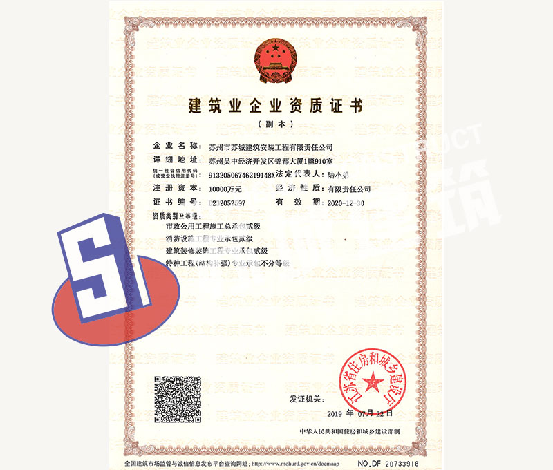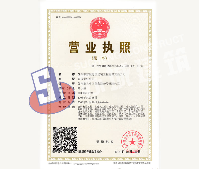 蘇州市蘇城建筑安裝工程有限責(zé)任公司,擁有主項(xiàng)建筑工程施工總承包一級(jí)資質(zhì),增項(xiàng)市政公用工程施工總承包二級(jí)資質(zhì)和建筑裝修